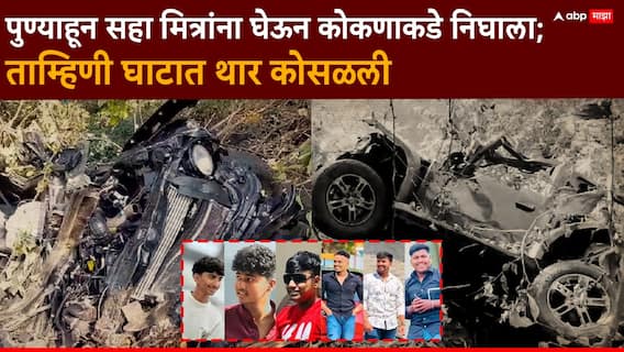 Tamhini Ghat Thar Accident: रायगडच्या ताम्हिणी घाटात थार अपघातातील (Tamhini Ghat Thar Accident) सहा तरुणांचा मृत्यू झाला असून हे सर्व तरुण 21 ते 22 वयोगटातील आहेत. सध्या 4 जणांचे मृतदेह रेस्क्यू करणाऱ्या टीमच्या हाती लागलेत उर्वरित दोघांचा शोध अजूनही सुरू आहे.