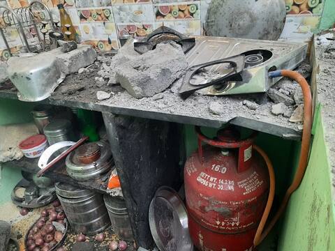 पुणे : गॅस गळती होऊन स्फोट झाल्याने सहा महिन्याच्या बाळासह आई-वडील जखमी झाले आहेत. पुण्यातील खराडी परिसरातील संभाजीनगर येथे आज सकाळी आठ वाजण्याच्या सुमारास ही घटना घडली. शंकर भवाळे(वय 28)आशाताई शंकर भवाळे(वय 26)आणि स्वराली भवाळे(6 महिने)अशी जखमींची नावे आहेत. खासगी रुग्णालयात त्यांच्यावर उपचार सुरू आहेत. या गॅसच्या स्फोटचा आवाज इतका मोठा होता, की आसपासच्या घरांनाही याची तीव्रता जाणवली. भवाळे कुटुंब खराडी येथील संभाजीनगरमध्ये राहतात. रविवारी रात्री हे कुटुंबीय झोपेत असताना घरातील गॅस गळती होऊन संपूर्ण घरात गॅस पसरला होता. सकाळी आठ वाजण्याच्या सुमारास आशाताई उठल्या आणि त्यांनी पाणी तापविण्यासाठी गॅस पेटवला असता मोठा स्फोट होऊन आग लागली. हा स्फोट इतका भयानक होता की यामुळे चार घरावरील पत्रे उडून गेली. तर, स्वयंपाकघरातील ओट्याचेही यामुळे मोठ्या प्रमाणात नुकसान झाले आहे. या स्फोटाच्या आवाजाने शेजारपाजरच्या नागरिकांनी भवाळे कुटुंबीयांच्या घराकडे धाव घेतली. स्फोटामुळे घराचे उडालेले पत्रे -