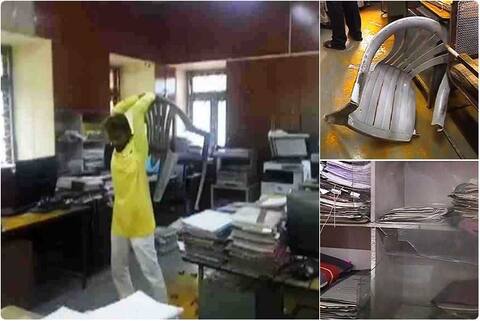 पुणे : धनगर आरक्षणाच्या मागणीसाठी पुण्यातील आदिवासी विकास आणि प्रशिक्षण संस्थेत दोन तरुणांनी तुफान राडा घातला. आरक्षणाच्या मागणीची पत्रकं भिरकावत कार्यालयात भंडारा उधळला. इतकंच नाही तर कार्यालयातील साहित्याची तोडफोड करुन काचाही फोडल्या. तसंच कार्यालयातील महत्त्वाची कागदपत्रं असलेल्या फाईल्सही इतरत्र भिरकावल्या. दोन तरुण आज दुपारी दीडच्या सुमारास निवेदन द्यायचंय असं सांगत आदिवासी विकास आणि प्रशिक्षण संस्थेत आले. निवेदन देताना त्यांची एका महिला अधिकाऱ्याशी बाचाबाची झाली. त्यानतंर या तरुणांनी हातातील पत्रकं भिरकावली आणि भंडारा उधळला. धनगर समाजाला एसटीमध्ये आरक्षण द्यावं, अशी मागणी करत जोरदार घोषणाबाजी केली. मग दोन्ही तरुणांनी कार्यालयातून पळ काढला. हे तरुण कोण होते, याबाबत अद्याप माहिती मिळालेली नाही. दरम्यान, अधिकारी-कर्मचाऱ्यांनी बनवलेल्या व्हिडीओच्या आधारे पोलिसांनी तोडफोड करणाऱ्यांचा शोध सुरु केला आहे. पाहा व्हिडीओ