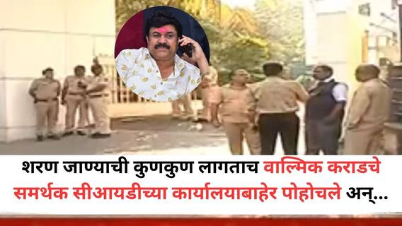 मस्साजोग गावाचे सरपंच संतोष देशमुख यांचे अपहरण आणि हत्या प्रकरणात वाल्मीक कराड गेल्या तीन आठवड्यांपासून फरार आहे. या प्रकरणात आतापर्यंत चार आरोपींना अटक करण्यात आलेली आहे. तर अद्याप काही आरोपी फरार आहेत. त्यामध्ये वाल्मिक कराड सूत्रधार असल्याचा दावा केला जात आहे. वाल्मिक कराडचा शोध सीआयडीकडून घेतला जात आहे. मिळालेल्या माहितीनुसार, कराड आज शरण जाणार असल्याची माहिती आहे. वाल्मीक कराडचे अनेक कार्यकर्ते सीआयडीच्या कार्यालयाबाहेर दाखल झाले. 'आम्ही सीआयडीच्या अधिकाऱ्यांना निवेदन देण्यासाठी आलो आहे. वाल्मीक कराड हे आरोपी नाहीत. ते खंडणीचा त्यांच्यावर खोटा आरोप, गुन्हा दाखल केला', असं समर्थकांचे म्हणणं आहे. हे कार्यकर्ते बीड आणि अहमदनगरवरून आल्याची माहिती आहे.