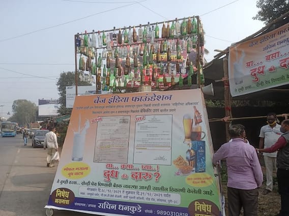 दरम्यान, आम्ही दारुच्या बाटल्या लावून याठिकाणी हे मद्यालय सजवले आहे. ज्याला दारू प्यायची आहे, त्यांनी या ठिकाणी येऊन दारु प्यावी. मात्र, उघड्यावर म्हणजे मनपाचे बाकडे, बस स्टॉप, सोसायटीतील पार्किंग, वाचनालये याठिकाणी दारु पिऊ नये असे आवाहन सचिन यांनी केले आहे. आम्ही दारुला विरोधच करतो. मात्र, या दारू पिणाऱ्या नागरिकांसमोर आम्ही पर्याय ठेवला आहे. त्यांना आमची विनंती आहे की, उघड्यावर दारू पिऊ नका. जे दारू पित नाहीत, त्यांना दूध देण्याची व्यवस्था केली असल्याचेही सचिन धनकुडे यांनी सांगितले.