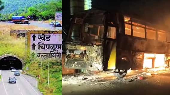 Ratnagiri Accident Kashedi Ghat: गणेशोत्सव अवघ्या काही दिवसांवर येऊन ठेपल्यामुळे सध्या मुंबईतील चाकरमान्यांची गावी जाण्यासाठी लगबग सुरु झाली आहे. कोकणातील (Konkan) आपापल्या गावी जाऊन गणपतीची तयारी करण्यासाठी अनेक मुंबईकर आतापासूनच गावी जाऊ लागले आहेत. त्यामुळे सध्या कोकणात जाणाऱ्या एसटी महामंडळ आणि खासगी ट्रॅव्हल्सच्या बसेसची(Bus fire) संख्या वाढली आहे. अशाच एका खासगी बसचा रविवारी पहाटे रत्नागिरीतील (Ratnagiri News) कशेडी बोगद्याजवळ (Kashedi Tunnel) अपघात झाला. या बसला भीषण आग (Fire) लागली. या आगीमध्ये ही खासगी बस संपूर्णपणे जळून खाक झाली आहे. मात्र, सुदैवाने या दुर्घटनेत कोणतीही जीवितहानी झालेली नाही.