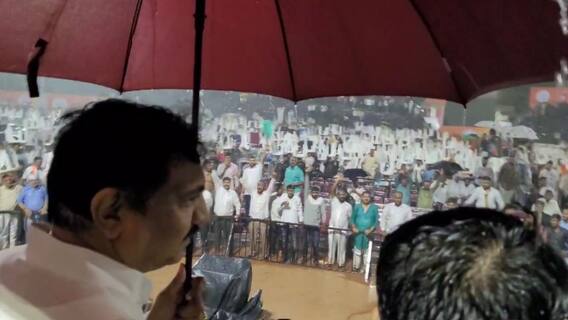 त्यामुळे भर पावसामध्ये कार्यकर्त्यांनी जोरदार घोषणाबाजी केली. यावेळी जयंत पाटील आणि शरद पवार यांच्या समर्थनार्थ कार्यकर्त्यांनी जोरदार घोषणाबाजी केली. पाऊस होत असताना सभास्थळी जयंत पाटील छत्री घेऊन उभे होते. भर पावसामध्ये कार्यकर्त्यांकडून जयंत पाटील तुम आगे बढो, हम तुम्हारे साथ है अशा घोषणा देण्यात आल्या. पाऊस थांबल्यानंतर जयंत पाटील पुन्हा व्यासपीठावर आले. कार्यकर्त्यांनी डोक्यावर खूर्च्या घेत जागा सोडली नाही.