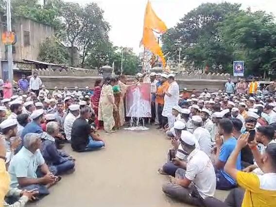 Sangli News: आंबे खाण्यापासून ते टिकली लावण्यापर्यंत ते पार राष्ट्रपुरुषांचा अवमान करण्यापर्यंत संभाजी भिडे यांच्या वादग्रस्त वक्तव्यांची मालिका सुरुच आहे. आता या मालिकेत महात्मा गांधी यांच्याविषयी केलेल्या वक्तव्याची भर पडली आहे. संभाजी भिडे यांच्यावर गुन्हा दाखल झाला आहे. याचा निषेध करत सांगलीत शिवप्रतिष्ठानकडून संभाजी भिडे यांच्या प्रतिमेस दुग्धाभिषेक घालण्यात आला.