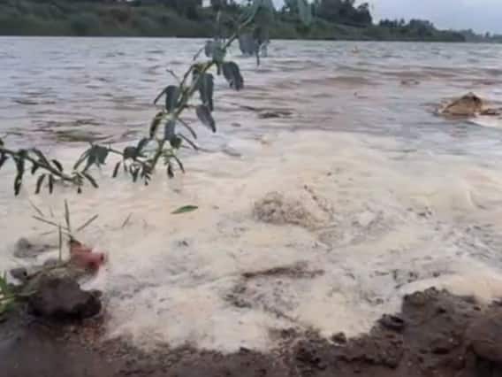 Sangli News: कृष्णा नदीत पाणी काही प्रमाणात वाढताच पुन्हा मळीमिश्रित पाणी नदीत सोडल्याचा प्रकार घडला आहे. पलूस तालुक्यातील आमणापूर जवळील कृष्णा नदी पात्रात हे मळीमिश्रीत पाणी मिसळलेले दिसून आले. यामुळे नदीच्या काठावर फेस जमा झाला आहे.