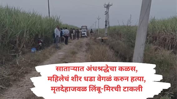 Satara Crime : सातारा जिल्ह्यातील फलटण तालुक्यातील वीडणी गावात अंधश्रद्धेतून एका महिलेची हत्या करण्यात आल्याची धक्कादायक घटना घडलीये. उसाच्या शेतात या महिलेचा शीर धडापासून वेगळे केलेला मृतदेह आढळून आलाय. मृतदेहाजवळ लिंबू, मिरची आणि हळदी कुंकु आढळून आलंय. दरम्यान घटनेची माहिती मिळताच सातारा जिल्ह्याचे पोलीस अधिक्षक समीर शेख यांच्यासह वरिष्ठ पोलीस अधिकारी घटनास्थळी पोहचलेत.