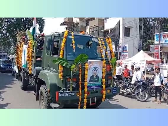 कराड (जि. सातारा) : सातारा जिल्ह्यातील (Satara News) कराडमधील (Karad) हुतात्मा नायब सुभेदार शंकर बसाप्पा उकलीकर (वय 38) यांना आज शेकडोंच्या नागिरकांच्या उपस्थितीत अखेरचा निरोप दिला. वीर जवान तुझे सलाम, शहीद जवान अमर रहे अशा घोषणा देत त्यांच्या पार्थिवाचे अखेरचे दर्शन घेण्यासाठी मोठी गर्दी झाली होती. यावेळी रस्त्याच्या दुतर्फा मोठी गर्दी झाली होती. कराडपासून वसंतगडपर्यंत 10 किमी अंत्ययात्रा काढण्यात आली. यावेळी शेकडो नागरिका सहभागी झाले होते. कराडच्या विजय दिवस चौकात त्यांच्या पार्थिवावर माजी मुख्यमंत्री आमदार पृथ्वीराज चव्हाण (Prithviraj Chavan) यांनी पुष्पचक्र अर्पण केल्यानंतर त्यांचे पार्थिव त्यांच्या मूळ गावी वसंतगडला त्यांची अंत्ययात्रा काढून नेण्यात आले.