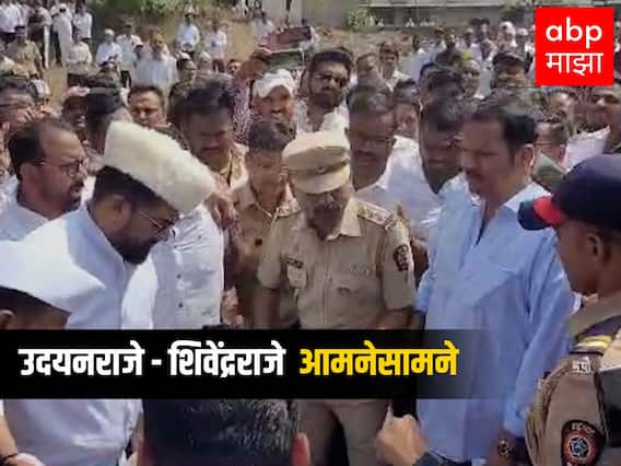 सातारा : साताऱ्यात (Satara News) शिवराज ढाब्याजवळ असलेल्या कृषी उत्पन्न बाजार समितीच्या नूतन जागेच भूमिपूजनाच्या कार्यक्रमामुळे खासदार उदयनराजे भोसले आणि आमदार शिवेंद्रराजे भोसले आमने सामने आले आहेत. खासदार उदयनराजे भोसले (Udayanraje Bhosale) यांच्या उपस्थितीत त्यांच्या कार्यकर्त्यांनी उधळून लावलं. मात्र तरी देखील उदयनराजेंचा विरोध झुगारून शिवेंद्रराजे भोसले (Shivendraraje Bhosale) यांनी भूमीपूजन केलं. या प्रकारानंतर उदयनराजे आणि शिवेंद्रराजे यांचे कार्यकर्ते आमनेसामने आले. यामुळे साताऱ्यात दोन्ही राजेंमधला वाद पुन्हा उफाळून आला आहेत.