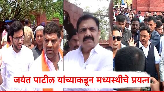 दोन्ही गटात वाद सुरु झाल्यानंतर दोन्ही बाजूचे नेते आणि कार्यकर्ते आक्रमक झाले होते. दोन्ही गटांशी चर्चा करुन वाद शांत करण्याचं काम जयंत पाटील करत आहेत. जयंत पाटील यांनी प्रथम निलेश राणे आणि नारायण राणे यांच्याशी चर्चा केली. नारायण राणे यांनी ठाकरे गटानं मागील बाजूनं बाहेर जावं अशी भूमिका घेतली. तर, जयंत पाटील यांनी तुम्ही इथून बाहेर गेलात तर ते पुढच्या 10 मिनिटात बाहेर जातील, असं जयंत पाटील म्हणाले. जयंत पाटील यांनी नारायण राणे यांच्याशी चर्चा केल्यानंतर आदित्य ठाकरे आणि मविआच्या नेत्यांसोबत चर्चा सुरु केली आहे.