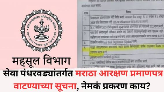 पुणे: महसूल विभागाच्या पुणे आयुक्तांच्या जीआरमुळे वादंग निर्माण होण्याची शक्यता निर्माण झाली आहे. महसूल विभागाचे पुणे आयुक्त यांच्याकडून तत्काळ सेवा पंधरवडा राबवण्याच्या सूचना देण्यात आली आहे. सेवा पंधरवड्यात प्रत्येक तालुक्यात मराठा आरक्षणाबाबत शासनातर्फे जाहीर शासन निर्णयानुसार प्रत्येक तालुक्यात किमान 1000 प्रमाणपत्र वाटप करण्याच्या आयुक्तांच्या सूचना आहेत. मराठा समाजासाठी हैदराबाद गॅझेटचा आधार घेऊन प्रमाणपत्र वाटप करण्यासाठी जीआर लागू करण्यात आला. हैदराबाद गॅझेट केवळ औरंगाबाद, परभणी, नांदेड, बीड व धाराशिव, हिंगोली, जालना या जिल्ह्यांचा समावेश आहे.