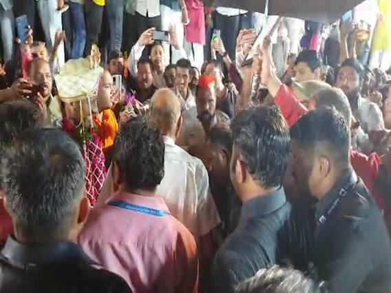 यावेळी नव वरवधूला आशीर्वाद देण्यासाठी शरद पवार स्वतः गाडीतून उतरून खाली आले आणि दोघांना शुभेच्छा दिल्या. खरं तर रविवारी सकाळपासून शरद पवार हे सोलापूर जिल्हा दौऱ्यावर होते. सुरुवातीला पंढरपूर त्यानंतर सांगोला येथे कार्यक्रम झाल्यानंतर शरद पवार यांना या लग्न सोहळ्याला यायला काहीसा उशीर झाला. त्यातच पावसाने हजेरी लावल्याने शरद पवार येतील की नाही अशी शंका होती. मात्र आपल्या सहकार्याला दिलेला शब्द पाळण्यासाठी शरद पवार यांनी भर पावसात देखील या सोहळ्याला हजेरी लावली.