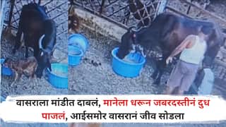 Solapur Crime: श्री विठ्ठल रुक्मिणी मंदिर समिती कडून गोवंशाचे जतन संवर्धन करण्यासाठी चालवण्यात येणाऱ्या गोशाळेतील एक धक्कादायक सीसीटीव्ही व्हिडिओ सोशल मीडियावर व्हायरल झाल्याने खळबळ उडाली आहे . या गोशाळेतील मंदिर समितीच्या कर्मचाऱ्यांनी वासरू दूध पित नाही म्हणून त्याला आपल्या मांडीत दाबून अन् मान धरून भांड्यात तोंड घातले. जबरदस्तीने दूध पाजल्याने काही वेळातच आईसमोरच त्या वासराने प्राण सोडल्याचे सीसीटीव्हीत दिसत आहे. या प्रकारामुळे संतप्त प्रतिक्रीया उमटत आहेत.