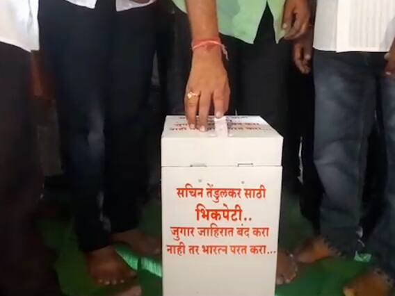 सोलापूर: सचिन तेंडुलकर ( Sachin Tendulkar) याने जंगली रमीची (Junglee Rummy Advertise) जाहिरात केल्याच्या विरोधात सोलापुरातील (Solapur) अकोलेकाटी गावातील गणपती मंडळपुढे चक्क भीकपेटी ठेवण्यात आली आहे. प्रहार संघटनेचे (Prahar Party) अध्यक्ष आमदार बच्चू कडू (Bachchu Kadu) यांनी या मंडळाला भेट देत गणरायाची पूजा केली. त्यानंतर या पेटीत स्वतः 100 रुपये टाकत सचिन तेंडुलकरवर टीका केली. महाराष्ट्रातील प्रहार संघटनेच्या विचारांचे जितके गणेश मंडळ आहेत तिथे अशा भीक पेटी ठेवल्या जातील. यात जमा होणारे पैसे विसर्जन झाल्यानंतर तेंडुलकर यांच्या घरी पोहचवू अशा इशारा देखील आमदार बच्चू कडू यांनी यावेळी दिला.