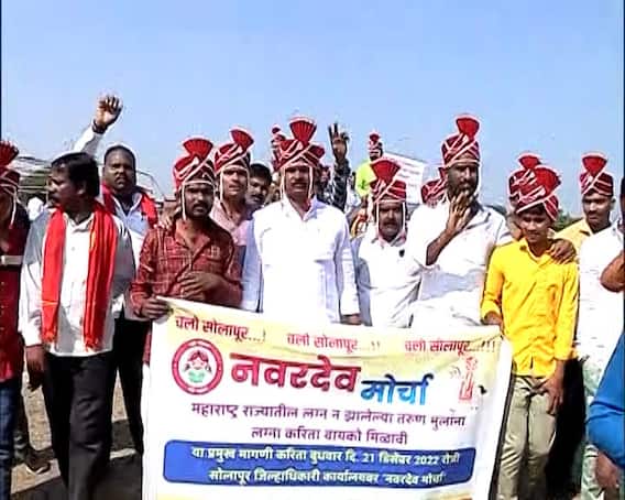 Solapur News : नोकरी असो किंवा विविध कामं यासाठी अनेक वेळा जिल्हाधिकारी कार्यालयावर मोर्चा काढल्याचं आपण बऱ्याचदा ऐकलं किंवा वाचलं असेल. परंतु लग्नासाठी (Marriage) मुलगी देण्याची मागणी करत जिल्हाधिकारी कार्यालयावर मोर्चा काढल्याचा प्रकार सोलापुरात (Solapur) घडला आहे. ज्योती क्रांती संघटनेकडून हा मोर्चा काढण्यात येत आहे. या मोर्चात आला. विवाहासाठी इच्छुक असलेल्या अनेक तरुणांनी नवरदेवाच्या वेशामध्ये हा मोर्चा काढला आहे.