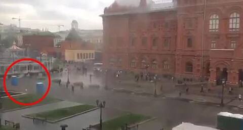मॉस्को: रशियाची राजधानी मॉस्कोमध्ये चक्रीवादळानं लोकांसोबतच चक्क रस्त्यावरची मोबाईल टॉयलेट्सही पळू लागली. हवामानात अचानक बदलल्याने आणि पावसानंही जोर धरल्यानं लोकांनी आधीच पळापळ सुरू केली, मात्र रस्त्यावर पाणी वाढल्याने मोबाईल टॉयलेट्सही वाहत वाहत सुटले. वाऱ्याच्या वेगाने या टॉयलेट्सचा वेगही वाढला. एकीकडे पावसापासून वाचण्यासाठी नागरिक रस्त्यावरुन पळत होते, तर दुसरीकडे रस्त्यावरील पाण्यातून मोबाईल टॉयलेट्स पुढे सरकत होते. हे टॉयलेट्सही पावसापासून बचावासाठी धावताहेत की काय असास प्रश्न उपस्थित होत होता. https://twitter.com/EugeneDX14/status/880766195691134976