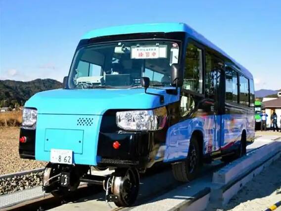 Dual-Mode Bus And Rail Vehicle : साधारणपणे रस्त्यांवर बस आणि लोहमार्गावर रेल्वे धावते, हे आपणा सर्वांना माहीत आहे. पण, रेल्वे रुळावर बस धावतेय, असे कोणी सांगितले तर विश्वास बसणे कठीण आहे. पण हे सत्य आहे. जपानमध्ये जगातील पहिली ड्युअल मोड व्हेइकल सर्व्हिस सुरू झाली आहे. यामध्ये एक बस रेल्वे रुळावर धावते आणि रस्त्यांवरही धावते. जपानमध्ये DMV सेवा सुरू करण्यात आली आहे.