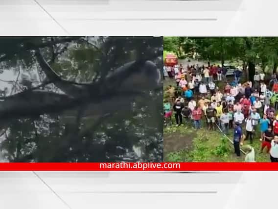 Python snake, Bhiwandi latest marathi News : भलामोठा अजगर झाड्यावर पाहून गावकऱ्यांची भंमेरी उडाल्याची घटना समोर आली आहे. ही घटना भिवंडी तालुक्यातील चाविंद्रा गावच्या हद्दीत असलेल्या पोगाव फाटा परिसरातील घडली आहे. पुरातून वाट काढत हा अजगर जीव वाचविण्यासाठी झाडावर चढला असावा असा अंदाज गावकऱ्यांनी व्यक्त केला आहे. सात ते 10 फूट लांब असणाऱ्या अजगराला पाहण्यासाठी लोकांनी एकच गर्दी केली होती.