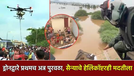 Heavy Rain: अमरावती : महाराष्ट्रातील मराठवाडा आणि विदर्भात मुसळधार पावसामुळे जनजीवन विस्कळीत झालं असून हजारो हेक्टर शेती पाण्याखाली गेली आहे. त्यामुळे, अनेक जिल्ह्यातील शेकडो शेतकऱ्यांचं अतोनात नुकसान झालं आहे. दुसरीकडे आंध्र प्रदेशातही मुसळधार पाऊस सुरू असून अनेक नद्यांना पूर आला आहे. त्यामुळे, नद्यांजवळील गावातील नागरिकांची स्थलांतर करण्यात आले. येथील नागरिकांच्या सेवेत आता सैन्य दलानेही पुढाकार घेतल्याचं दिसून येते. राज्यातील पूरग्रस्त परिसरात लोकांना जेवण पुरविण्यासाठी सैन्य दलाच्या माध्यमातून अभिनव आणि माणूसकीचं काम केलं जातंय. येथील अनेक भागात ड्रोनद्वारे आणि सैन्याच्या हेलिकॉप्टरमधून जेवण पोहोचवण्यात येत आहे. विशेष म्हणजे ड्रोनद्वारे जेवण पोहोचविण्याचा हा पहिलाच प्रयत्न आहे. जेथे बोट किंवा हेलिकॉप्टरचा वापर अश्यक आहे, तेथे ड्रोनच्या मदतीने पूरग्रस्तांना अन्न पुरवलं जात आहे.