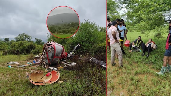 पुणे : पावसाळ्यामुळे हवामान सातत्याने बदलत असल्याने हवाई वाहतुकीवर याचा परिणाम होतो. यापूर्वीही अनेकदा हवामान खराबीमुळे हवाई वाहतूक अचानक बदलण्यात आली किंवा इमर्जन्सी लँडींग करण्यात आल्याचं पाहायला मिळालं आहे. मात्र, पुणे जिल्ह्यातील पौडजवळ आज हेलिकॉप्टर क्रॅश झाल्याची दुर्दैवी घटना घडली. मात्र, सुदैवाने या दुर्घटनेत हेलिकॉप्टरमधील सर्वजण सुखरुप बचावले आहेत. या दुर्घटनेत पायलट जखमी झाल्याची माहिती असून त्यास रुग्णालयात दाखल करण्यात आलं आहे. हेलिकॉप्टर चालकाने प्रसंगावधान दाखवत येथील एका शेतात ते उतरवण्याचा प्रयत्न केल्याने इमर्जन्सी लँडींग शक्य झाले, पण ते हेलिकॉप्टर क्रॅश होऊन शेतात कोसळले. देव तारी, त्याला कोण मारी... या म्हणीचा प्रत्ययचं या हेलिकॉप्टर दुर्घटनेतून आला आहे. कारण, बघता बघता एका क्षणात हे हेलिकॉप्टर खाली कोसळले आणि त्याचा चेंदामेंदा झाला आहे. मात्र, सुदैवाने सर्वच प्रवासी बचावले आहेत. या घटनेचा व्हिडिओ सोशल मीडियावर चांगलाच व्हायरल झाला असून सर्वच प्रवासी बचावल्याने नेटीझन्सकडून समाधान व्यक्त होत आहे.