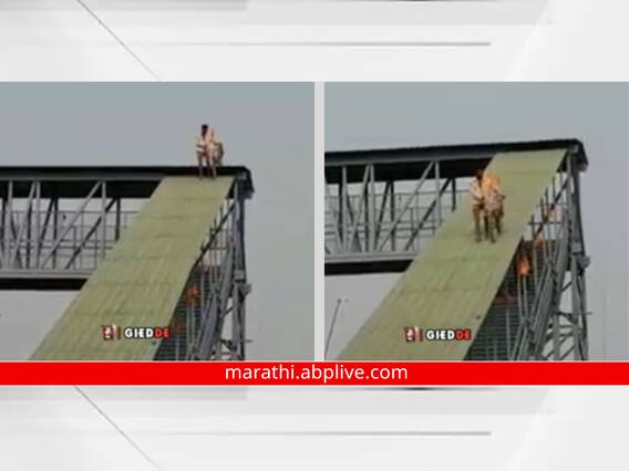 Cycling On Over Bridge Top : आज कुछ तुफानी करते हैं... टीव्हीवर तुम्ही आतापर्यंत बरेच ॲक्शन सीन्स पाहिले असतील. अभिनेते एका बिल्डींगवरून दुसऱ्या बिल्डिंगवर उड्या मारताना, कधी पाण्यावरून चालताना तर कधी इतर काही ॲक्शन करताना दिसून येतात. पण खऱ्या आयुष्यातही काही लोक असे स्टंट करायला जातात, पण त्यांना आयुष्याची किंमत कळत नाही. असे स्टंट करताना लोक जीव धोक्यात घालतात. असाच एक व्हिडीओ सध्या सोशल मीडियावर व्हायरल होत आहे. या व्हिडीओमध्ये एक व्यक्ती थेट फूटओव्हर ब्रिजच्या छतावर सायकल चालवताना दिसत आहे. उपस्थितांनी हा व्हिडीओ चित्रीत केला असून हा प्रचंड चर्चेत आहे.