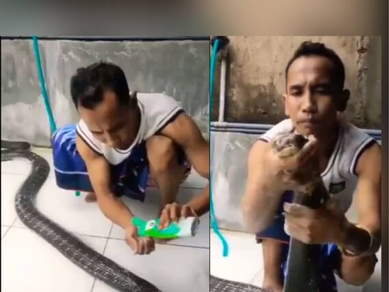 Trending Snake Bath Video: 'किंग कोब्रा' (King cobra) हे नाव फक्त ऐकलं तरी अनेकांच्या अंगावर शहारे येतात. किंग कोब्रा या सापाचा एक व्हिडीओ सध्या सोशल मीडियावर (Social Media) प्रचंड व्हायरल होत आहे. या व्हिडीओमध्ये (Viral Video) एक व्यक्ती चक्क किंब कोब्रा या सापाला आंघोळ घालत आहे. 'किंग कोब्रा आणि माणसामधील बाँडिंग पाहा' असं कॅप्शन या व्हायरल व्हिडीओला देण्यात आलं आहे.