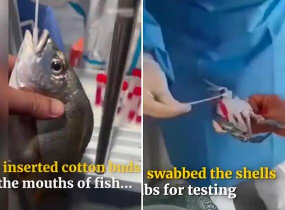 हाँगकाँगमधील इंग्रजी वृत्तपत्र साऊथ चायना मॉर्निंग पोस्टच्या ट्विटर अकाऊंटवरून हा कोविड टेस्टचा व्हिडीओ चांगलाच व्हायरल झाला आहे. या व्हिडीओ सध्या सोशल मीडियावरील चर्चेचा विषय बनला आहे. व्हायरल व्हिडीओमध्ये चीनी अधिकारी मासे, खेकडे यांच्या तोंडातील स्वॅब घेताना दिसत आहेत. ये खरं आहे.