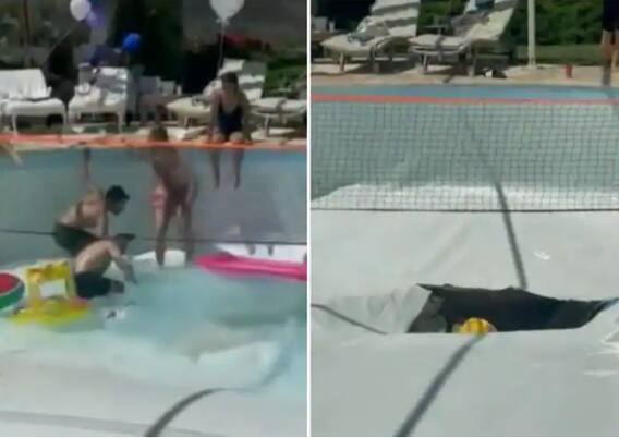 सोशल मीडियावर व्हायरल झालेला हा व्हिडीओ इस्त्राइलमधील आहे. इस्त्राइलमधील एका पूल पार्टीदरम्यान ही दुर्घटना घडली. अचानक स्विमिंग पूलमध्ये खड्डा तयार झाला. ही घटना लक्षात येताच आजूबाजूला हजर असलेल्या लोकांनी स्विमिंग पूलमधील लोकांना तात्काळ स्विमिंग पूलमधून बाहेर येण्यास मदत केली.