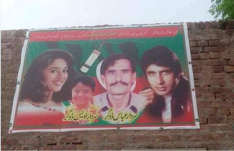 कराची : राजकारण आणि बॉलिवूड यांचं कनेक्शन सर्वश्रुत आहे. मात्र हे लोण भारतीय राजकारणापुरतं मर्यादित न राहता सीमेपार पोहचल्याचं दिसत आहे. पाकिस्तानी निवडणुकांच्या तोंडावर सोशल मीडियावर एक पोस्टर व्हायरल झालं आहे. इम्रान खान यांच्या पक्षासाठी बॉलिवूडची धकधक गर्ल माधुरी दीक्षित आणि बिग बी अमिताभ बच्चन प्रचार करत असल्याचं या पोस्टरवर पाहायला मिळत आहे. इम्रान खान यांचा पक्ष पाकिस्तान तेहरीक-ए-इन्साफ (पीटीआय)चं निवडणूक चिन्ह असेलली क्रिकेट बॅट या व्हायरल पोस्टरवर आहे. त्यासोबत माधुरी आणि अमिताभ यांचे तरुणपणीचे चेहरे पोस्टरवर दिसत आहेत. हे पोस्टर सोशल मीडियावर व्हायरल झालं असून इम्रान खान यांनी प्रचारासाठी बॉलिवूडमधील हुकमी एक्के बोलावल्याच्या अफवा पसरल्या आहेत. पोस्टरवर सरदार अब्बास डोगर आणि सरदार ओवेस डोगर अशा दोन व्यक्तींचेही फोटो आहेत. फोटोखाली उर्दू भाषेत त्यांची नावं लिहिण्यात आली आहेत. 'मै झुका नही, मै बिका नही, कही छुपा छुपा के खडा नही, जो डटे हुए है लडाई के मैदान में, मुझे उन लोगों मे तलाश कर' असं उर्दूमध्ये लिहिल्याची माहिती आहे.