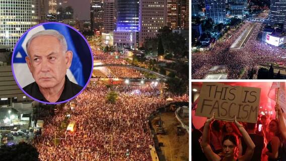 Israel Nationwide Protest : गाझा पट्टीत सहा ओलिसांचे मृतदेह सापडल्यानंतर इस्रायलमध्ये संतापाची लाट उसळली आहे. विविध शहरांमध्ये सुमारे 5 लाख लोकांनी निदर्शने केली. टाइम्स ऑफ इस्रायलच्या अहवालानुसार राजधानी तेल अवीवमध्ये 3 लाखांहून अधिक आणि इतर शहरांमध्ये 2 लाखांहून अधिक लोक जमले. सीएनएनच्या वृत्तानुसार बंधक आणि हरवलेल्या कुटुंब मंचाने 7 लाखांहून अधिक लोकांना एकत्र करण्याचा दावा केला. आंदोलकांनी सहा हत्या केलेल्या ओलिसांच्या मृतदेहाचे प्रतीक म्हणून सहा शवपेटी धरल्या. 7 ऑक्टोबरच्या हल्ल्यानंतर इस्रायलमधील हे सर्वात मोठे आंदोलन आहे. पंतप्रधान नेतन्याहू यांच्या घराबाहेरही निदर्शने करण्यात आली.