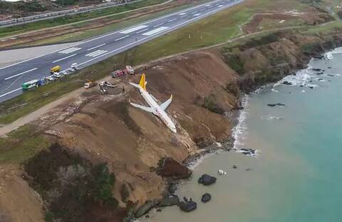रनवेवरुन विमान घसरलं, समुद्रापासून काही फुटांवर अडलं