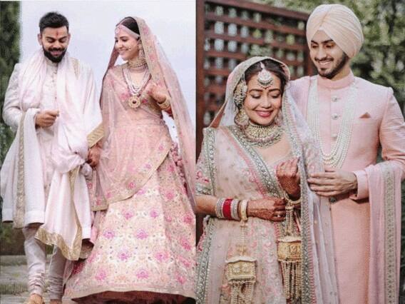 अनुष्का शर्माचे 2017 मध्ये लग्न झाले होते. तिच्या लग्नाची वेषभूषा डिझायनर सब्यसाची यांनी डिझाइन केली होती. त्याचवेळी नेहा कक्कड हिचाही मल्टीकलर लहंगा सब्यसाची यांनी डिझाइन केला आहे. (Photo Credit - Social Media)