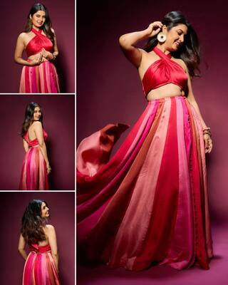 नुकत्याच एका खास फोटोशूटमध्ये तिने लाल रंगाचा हॉल्टर टॉप आणि लांब, वाहत्या पट्टेदार स्कर्ट परिधान केला आहे.