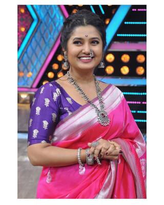 या फोटो मध्ये तिने पिंक सारी परिधान केलीये आणि ऑक्सिडाइज्ड दागिने घालून तिने तिचा लूक पूर्ण केलाय. (फोटो: prajakta_official/IG )