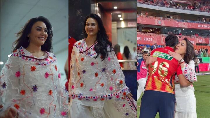 दरम्यान, गेल्या सामन्यात अभिनेत्री आणि पंजाब किंग्जची मालकीण प्रीती झिंटा हिने सर्वांचं लक्ष वेधलंय. तिने पांढराशुभ्र पंजाबी ड्रेस घातलाय.