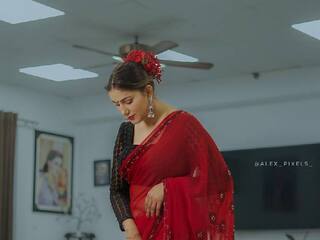 भिनेत्रीने लाल साडीसोबत फुल स्लीव्ह ब्लाउज घातला आहे.(photo:itssapnachoudhary/ig)