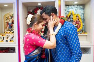 दोन दिवसात सगळं ठरवलं. एका तासात खरेदी आणि 15 मिनिटांमध्ये 4 लोकांच्या साक्षीने मंदिरात, (इथे Covid restrictions मुळे तेवढंच शक्य आहे) वरमाळ, मंगळसूत्र, कुंकू केवळ या 3 गोष्टी करून (लग्नाच्या मान्यतेसाठी मंदीराकडून प्रमाणपत्र मिळवण्यासाठी आवश्यक असणाऱ्या विधी) विवाह नोंदणीवर स्वाक्षरी केली.