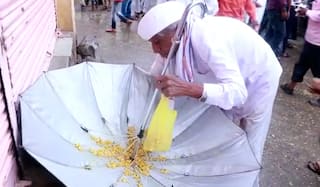 PHOTO : राजुरीत उलट्या छत्र्या धरून प्रसाद झेलण्याचाही अनोखी प्रथा