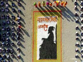 बीडच्या गेवराई येथील न्यू हायस्कूल शाळेमधील विद्यार्थ्यांनी छत्रपती शिवाजी महाराजांच्या जयंतीनिमित्त रांगोळीच्या माध्यमातून भव्य चित्र साकारून शिवजयंती साजरी केली आहे.
