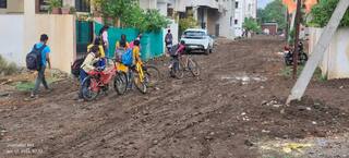 कोणाची सायकल चिखलात रुतली तर कोण सायकल उचलून घेऊन शाळेत निघालं. बीड शहरात असलेल्या राजमुद्रानगरमधला हा प्रकार घडला.