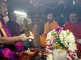 देवस्थानचे अध्यक्ष तथा तहसीलदार विठ्ठल परळीकर, पोलीस निरीक्षक गणपतराव राहिरे, देवस्थानचे व्यवस्थापक सुरेंद्र डफळ यांनी महापूजा करुन दुग्धअभिषेक केलं.