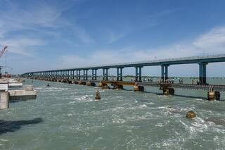 नवीन होणारा पामबन पुल हा विस्मयकारक इंजिनियरिंगचा एक अद्भुत नमुना आहे. रामेश्वरम व धनुषकोडी आधीच नामांकीत पर्यटन स्थळं आहेत आणि या भव्य-दिव्य पुलामुळे तामिळनाडूच्या पर्यटनाला अजून गती मिळण्याची शक्यता आहे. (PHOTO - PTI)