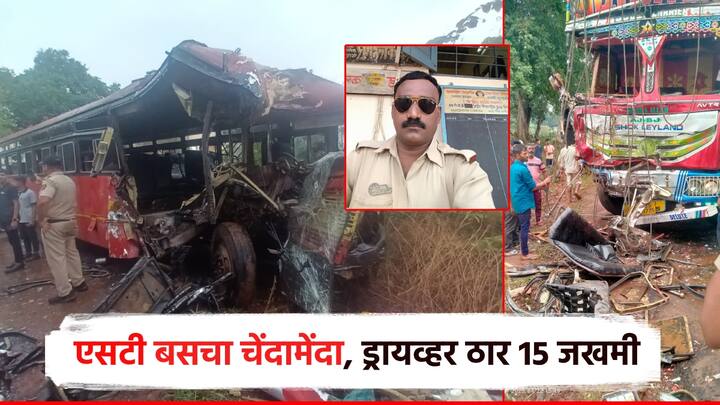 Bus Accident कोल्हापुरात भीषण अपघात, ट्रकच्या धडकेत ST बसचा चेंदामेंदा; ड्रायव्हर ठार, 15 जखमी