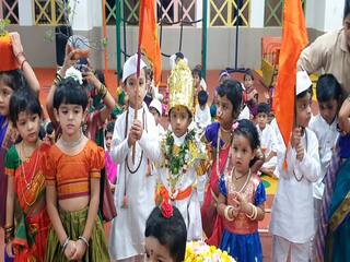 यावेळी या छोट्या वारकऱ्यांनी हातात टाळ आणि डोक्यावर तुळस, गळ्यात तुळशीच्या माळा घालून हरी नामाचा गजर केला.