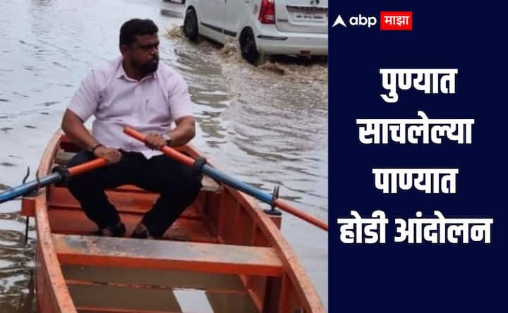 राज्याच्या विविध भागात जोरदार पाऊस झाला आहे. पहिल्याच पावसात पुण्यातील रस्ते तुंबले, शरद पवार गटाच्या नेत्याचं साचलेल्या पाण्यात होडी आंदोलन केलं आहे.