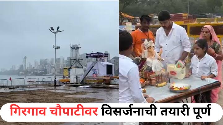 गणपची विसर्जनाच्या निमित्ताने गिरगाव चौपाटीवर विसर्जनाची तयारी पूर्ण झाली आहे.