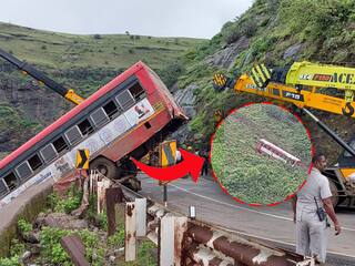 Nashik News : 12 जुलैला गणपती टप्प्यावरून बस दरीत कोसळली होती, तीन क्रेन, आपत्ती व्यवस्थापन व स्थानिक नागरिकांच्या मदतीने बसला दरीतून बाहेर काढण्याची मोहीम फत्ते