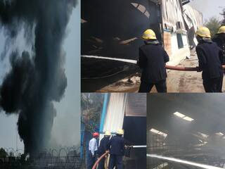 IN PICS | पुण्यातील सणसवाडी औद्योगिक क्षेत्रातील कंपनीला भीषण आग