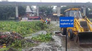 चार जेसीबीच्या साह्याने जलपर्णी बाजूला काढण्याचा काम सुरू झालेले आहे.