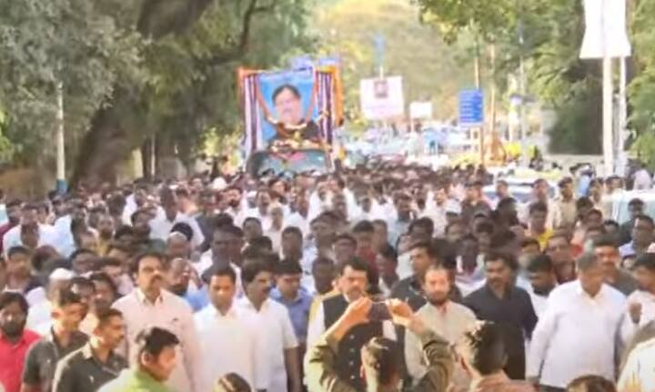 पुण्याचे खासदार गिरीश बापट यांचं आज निधन झालं. त्याचं पार्थिव शनिवार पेठेतील निवासस्थानी अंत्यदर्शनासाठी ठेवण्यात आलं होतं. अनेक नेते अंत्ययात्रेत सहभागी झाले आहेत.
