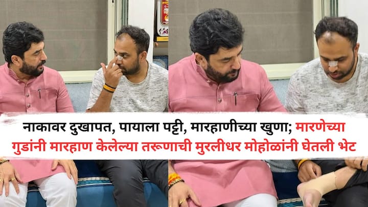 Murlidhar Mohol: नाकावर दुखापत, पायाला पट्टी, अंगावर मारल्याच्या खुणा; मारणेच्या गुडांनी मारहाण केलेल्या तरूणाची मुरलीधर मोहोळांनी घेतली भेट